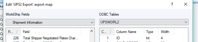 For the export map, you will now be mapping fields to the ODBC Table UPSWORL2 instead of the old UPSWORLD file.