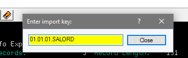 For example, to import a Sales Order with the Sales Order number "SALORD" in company 01, division 01, branch 01, enter: