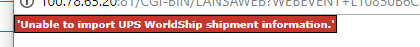 If data has not been exported from the UPS WorldShip application or the interface has not been configured correctly, an error message is shown: