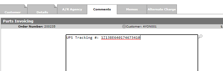 If multiple shipments have been generated for a single sales order before attempting the import, the freight charges are combined and multiple tracking numbers are shown on the Comments tab.