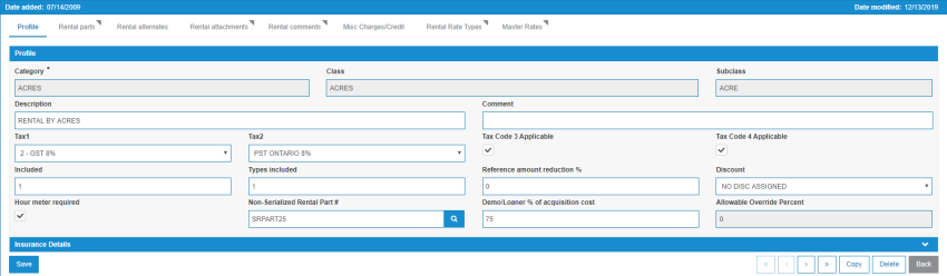 | Non-Serialized Rental Part # | Enter for Search for a non-serialized rental part number |