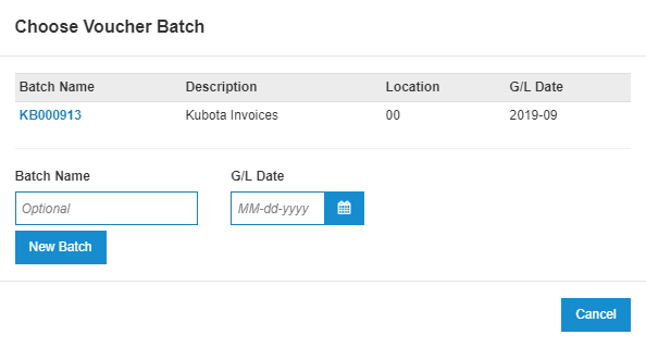 To create a new batch enter a G/L Date and an optional Batch Name, then click New Batch.