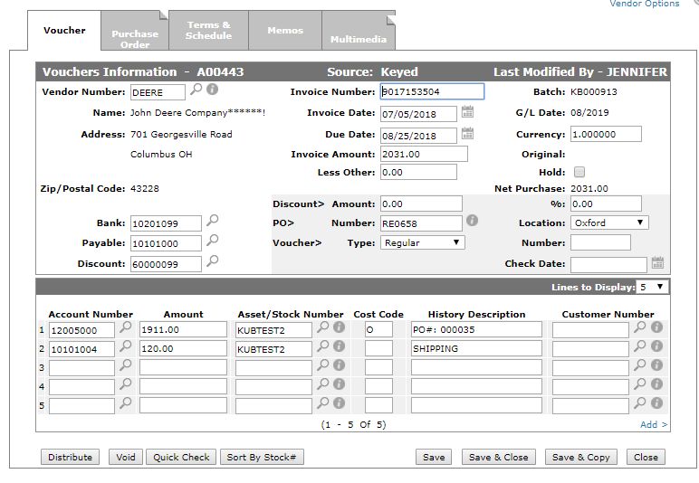 Accounts Payable Vouchers - Kubota Invoices (Legacy)